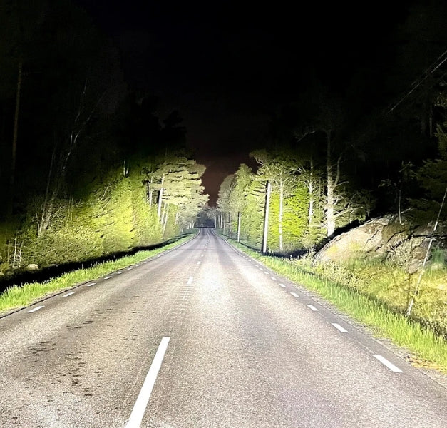 Observera: Bildgalleriet visar hur tre stycken Revolution 9" PRO lyser i verkligheten. Resultatet med fyra lampor ger ännu större räckvidd och ljusbild.