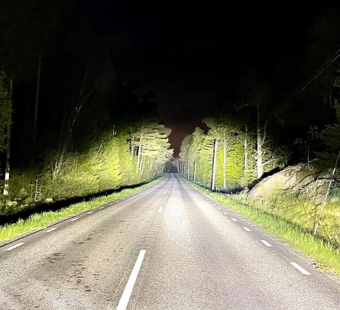 Varje lampa levererar upp till 16 000 lumen och når hela 1590 meter med Dual Power-funktionen aktiverad. Oavsett om du kör personbil, transportbil eller tung trafik, så får du ljus som gör skillnad – både i säkerhet och komfort.