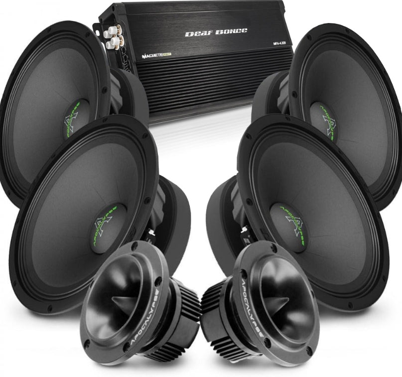 Apocalypse 8 Kit är inte för nybörjaren. Det är för dig som vet vad du vill ha – och vill ha det extremt. Med några av de mest respektingivande mellanregistren och diskanterna i Deaf Bonce utbud, samt ett kraftfullt slutsteg redo att driva dem fullt ut, får du ett färdigt paket för ren brutalitet i ljudform.