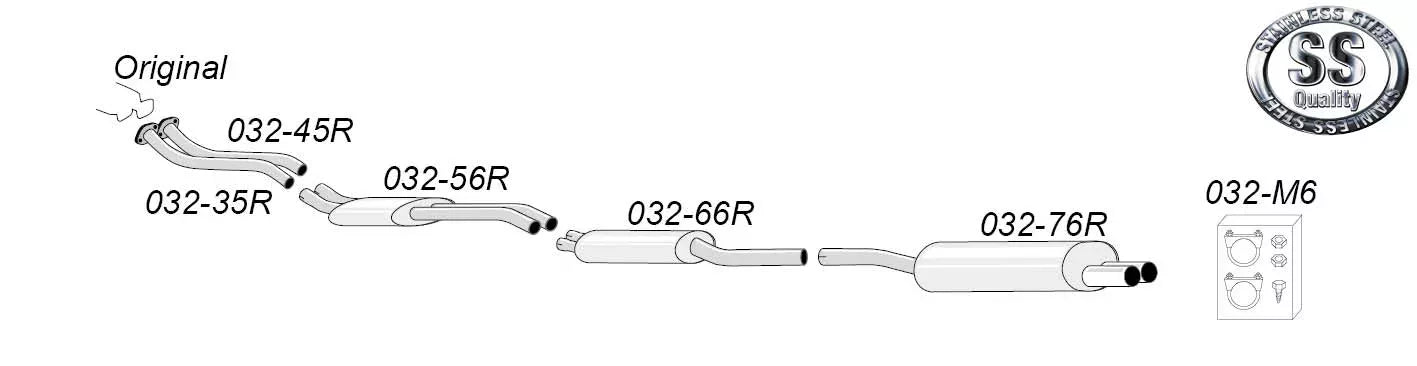 Systemet är EWG-typgodkänt (E32H6) och uppfyller de krav som ställs för vägbruk inom EU. Med en vikt på 25,8 kg kombinerar detta avgassystem prestanda med hållbarhet och optimal passform för BMW E46 320i, 323i och 328i.