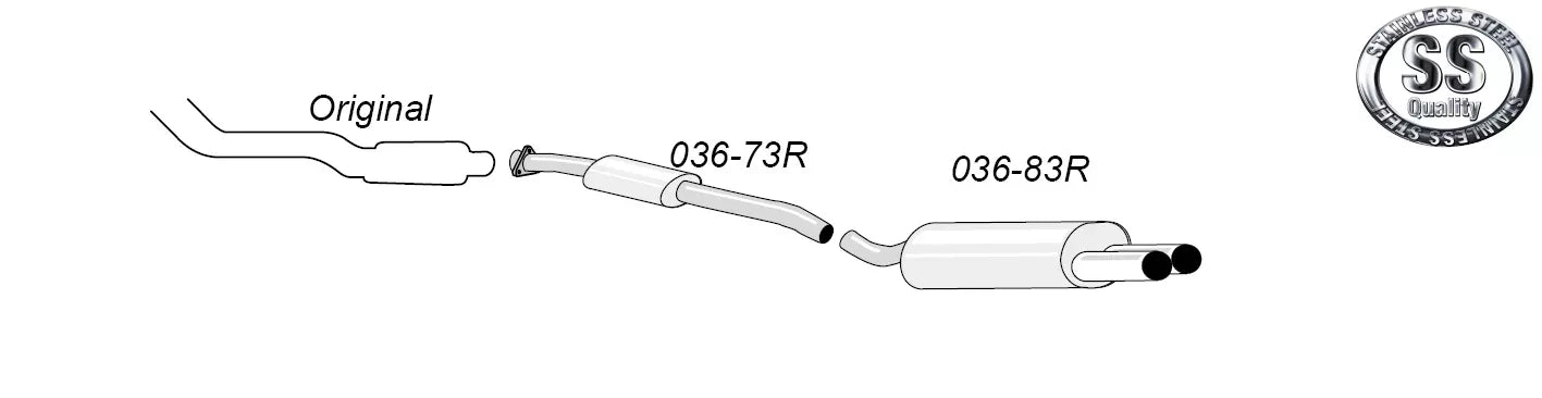 Avgassystemet har en rördiameter på 63,5 mm och två ändrör på 80 mm, vilket ger bilen ett sportigt utseende och en distinkt ljudprofil. Konstruktionen i rostfritt stål säkerställer hög korrosionsbeständighet och lång livslängd även under frekvent användning.