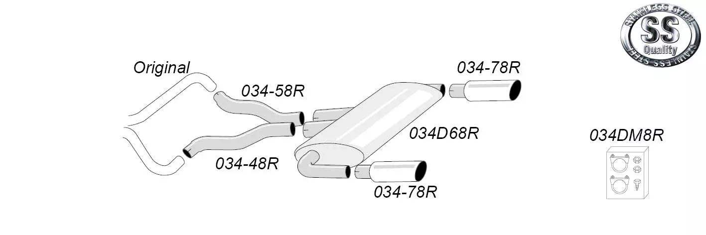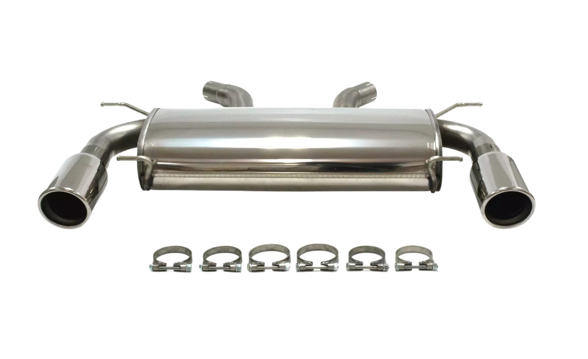 Med duplex ändrör på 2x100 mm får bilen ett riktigt aggressivt och exklusivt utseende. Det rostfria stålet ger lång livslängd och motståndskraft mot korrosion. För Cabrio-modeller behöver tvärstaget mellan differential och stötfångare demonteras vid montering.