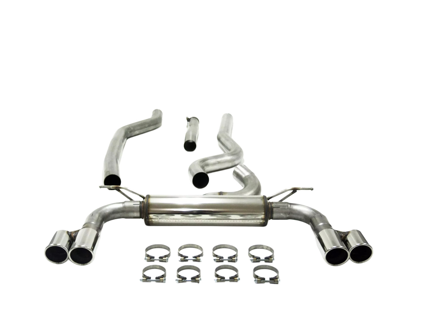 Med hela fyra ändrör på 80 mm och rördiameter på 76 mm + 2x63,5 mm får bilen en aggressiv design som verkligen sticker ut. Systemet fungerar med både bakhjulsdrivna och xDrive-modeller, men stötfångaren eller diffusorn måste bearbetas eller bytas ut för korrekt montering. Viktigt: Ej avsett för bilar med ”Blue Performance/Euro 6”, då modellen 03A-31R i så fall ersätter original NOx-katalysator.
