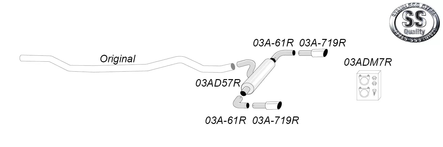 Med dubbla 90 mm ändrör och rördiameter på 70 mm + 2x63,5 mm får bilen ett sportigt och exklusivt utseende. För montering krävs diffusor från 335/435 (M-sport), vilket enkelt kan bytas på bilar med M-sportpaket. Systemet passar dock inte stötfångare/diffusor med endast singeluttag på vänster sida, då läget för högersidan inte går att anpassa.