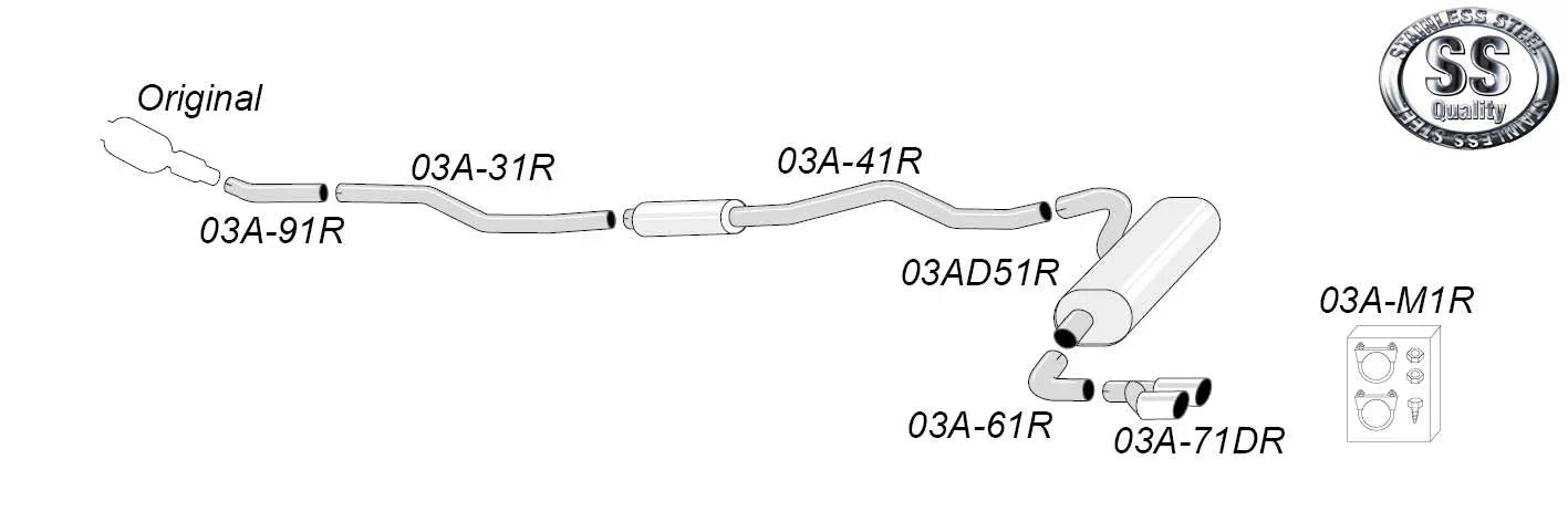 De dubbla ändrören på 80 mm ger bilen ett sportigare utseende och ett kraftfullare ljud. För montering krävs att stötfångare eller diffusor bearbetas eller bytas ut.