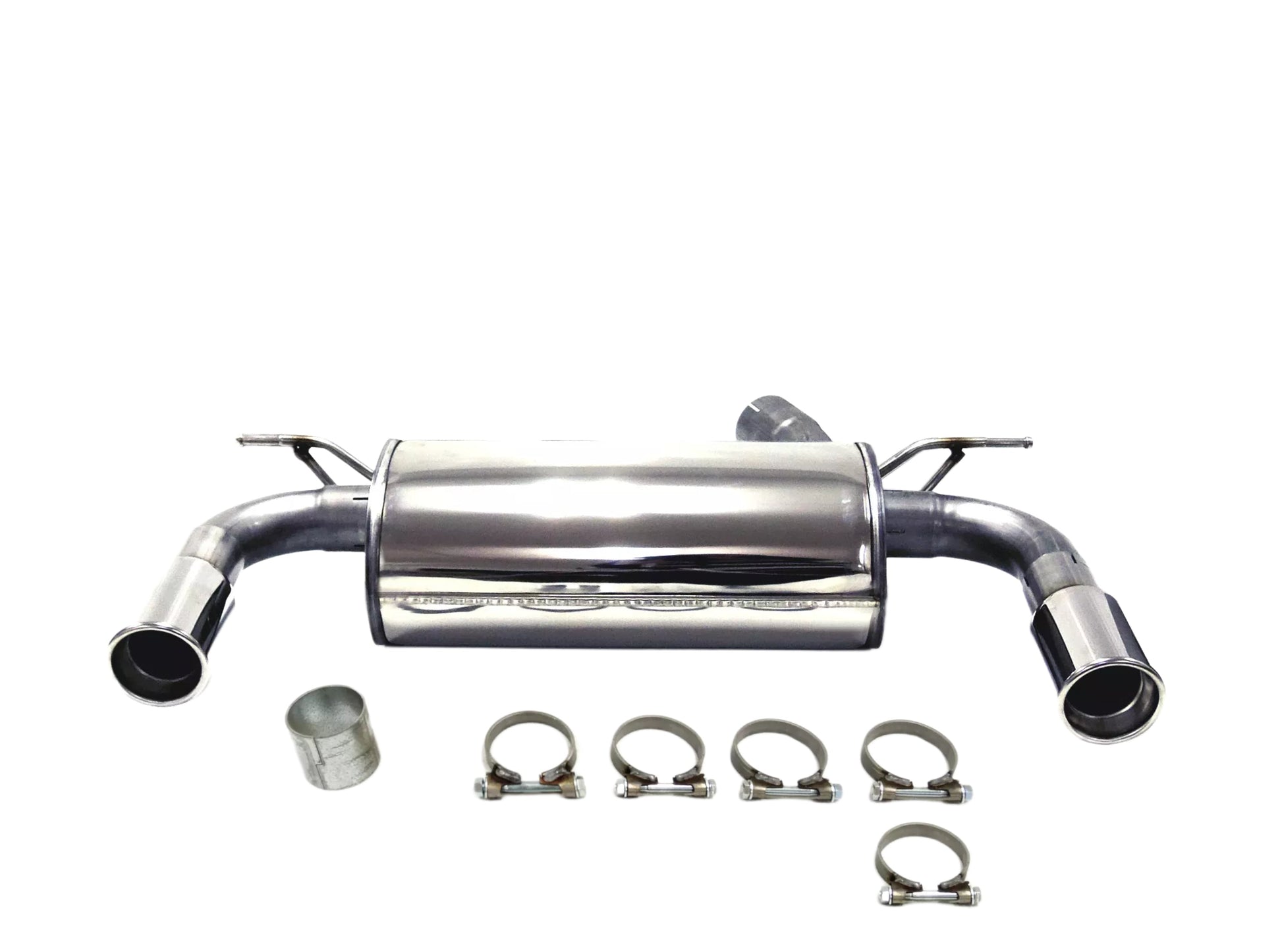 Bakre ljuddämpare i rostfritt stål för BMW F30/F31 320i och 330i (Sedan/Touring) samt F32/F33/F36 420i och 430i (Coupé, Cabrio och Gran Coupé) årsmodell 2015–2019. Passar både bakhjulsdrivna modeller och xDrive.