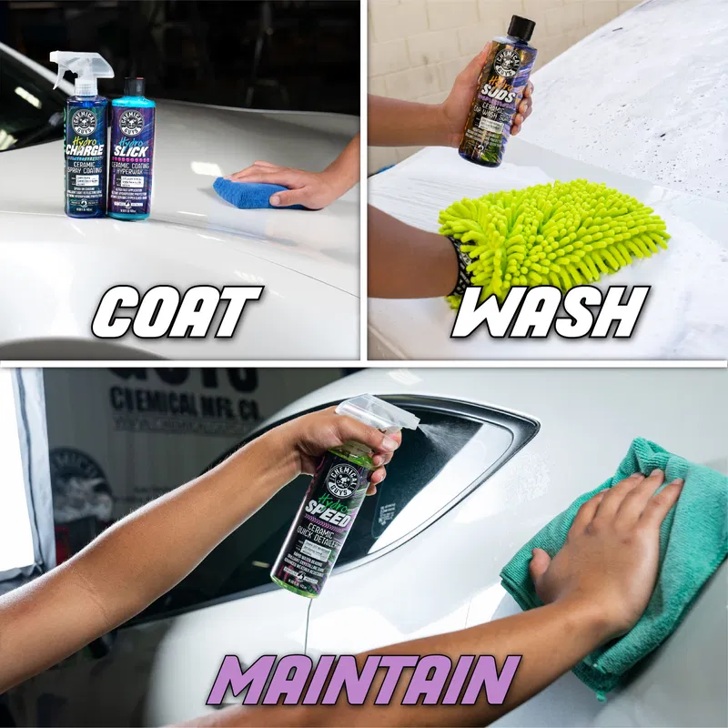 Chemical Guys HydroCharge är ett avancerat keramiskt lackskydd i sprayform, utvecklat för att ge professionell prestanda med enkel applicering. Produkten är baserad på SiO₂-teknologi och skapar en hård, vattenavvisande och högblank skyddsfilm som varar upp till 12 månader. Skyddet är motståndskraftigt mot UV-strålning, vattenfläckar, oxidation, smuts, insekter och föroreningar.