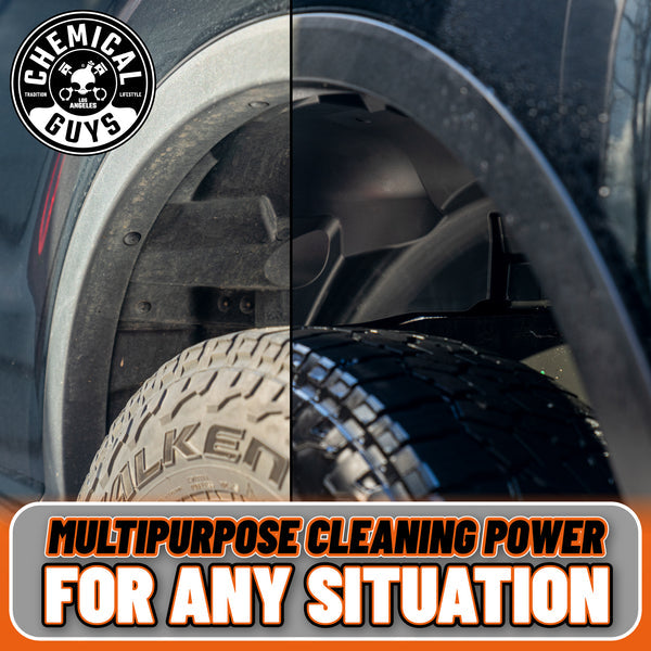 Chemical Guys Orange Degreaser är en citrusbaserad, alkalisk och högskummande avfettning som tar bort olja, fett, salt, bromsdamm, insekter och envis smuts. Produkten är superkoncentrerad, vilket gör den både ekonomisk och mångsidig – perfekt för allt från motortvätt till lättare bilvård.