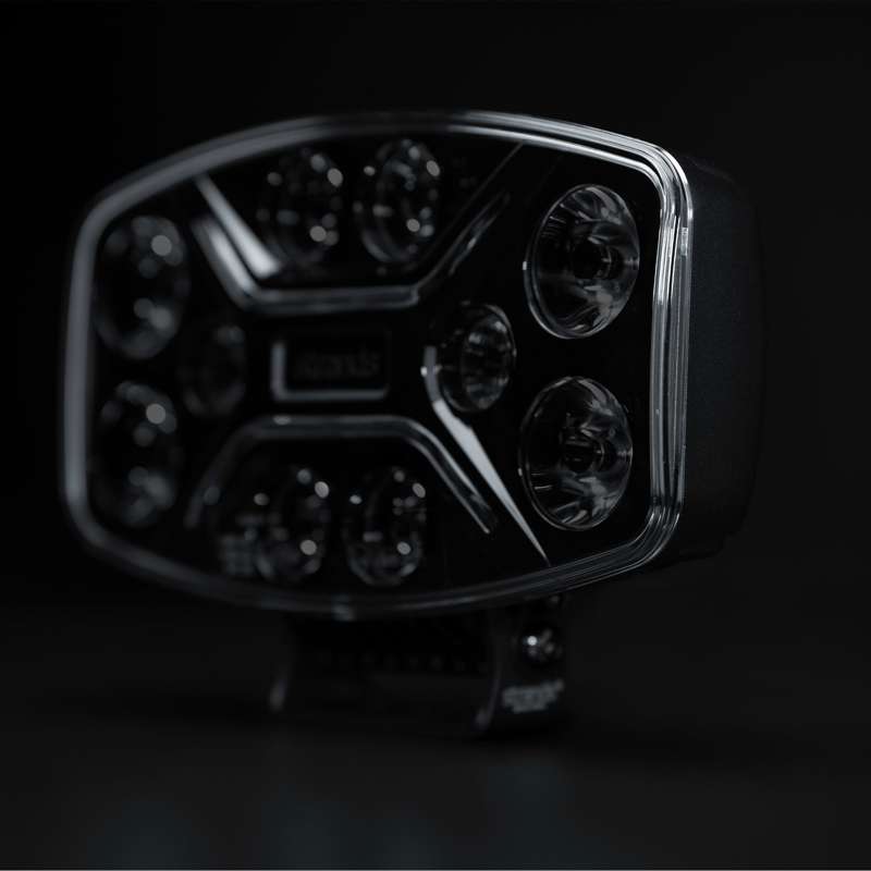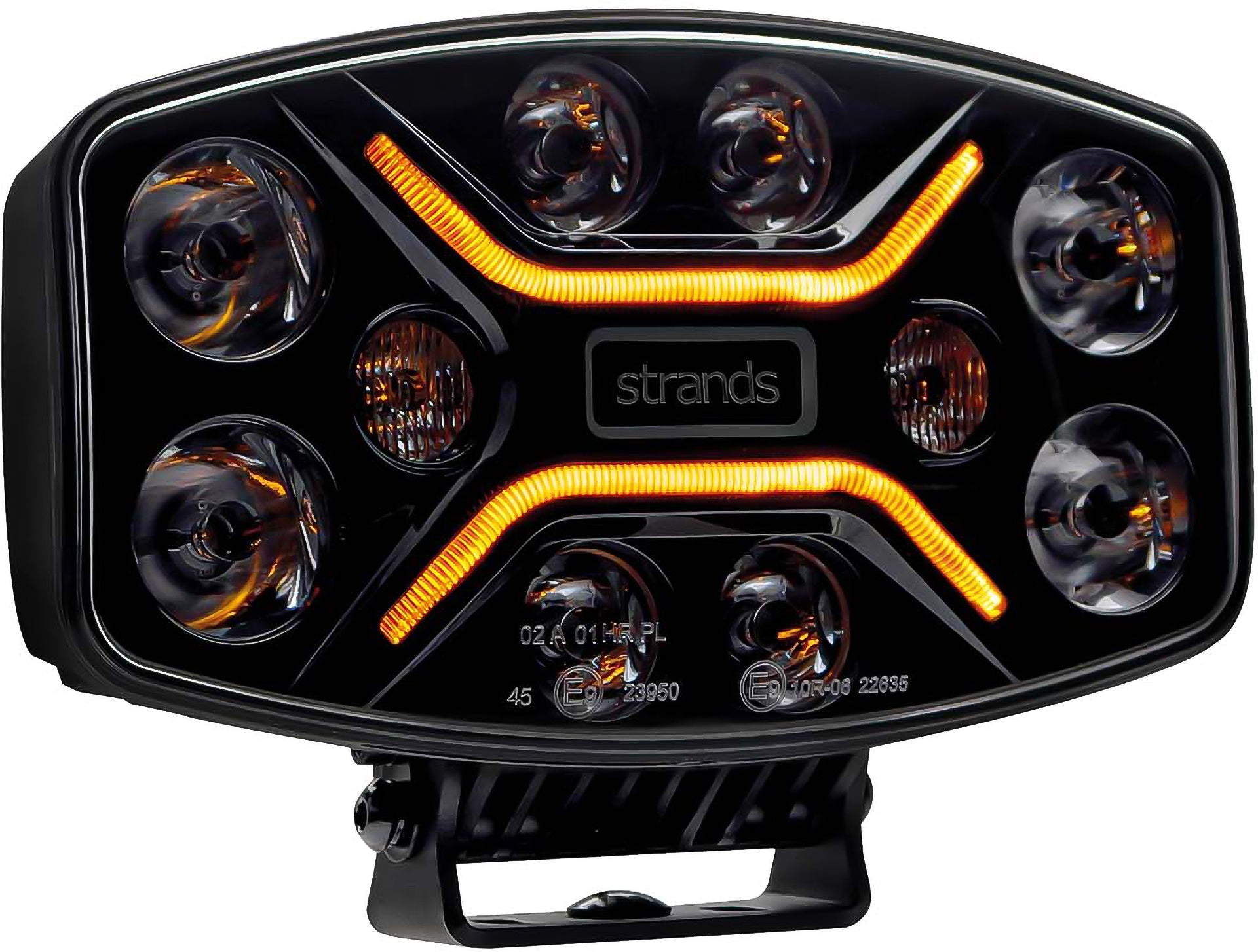 Strands Dark Knight Insane LED-extraljus är ett högpresterande arbets- och fordonsljus som kombinerar extremt ljusstarkt LED-ljus med robust konstruktion för krävande miljöer. Med en effektförbrukning på 120 W levererar ljuset ett faktiskt ljusflöde på 10 500 lumen (teoretiskt 12 000 lm), vilket ger maximal synlighet även under svåra förhållanden. Extraljuset är utrustat med positionsljus i vitt och orange samt varsel- och positionsljus för ökad säkerhet och synlighet.