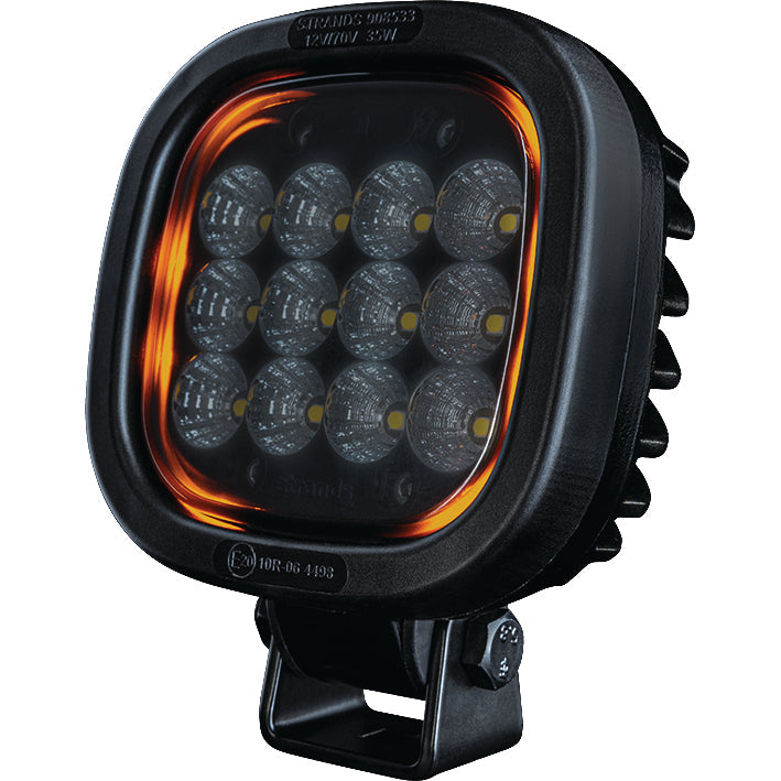 Strands Dark Knight President 908533 är en kompakt och tålig LED-arbetslampa utvecklad för professionellt bruk i krävande miljöer. Lampan levererar 3000 lumen faktiskt ljusflöde och är utrustad med gult positionsljus, vilket ökar synligheten och gör arbetsfordonet mer distinkt.