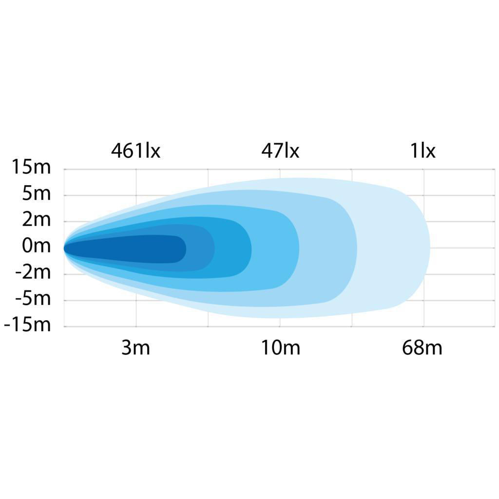 Med en effekt på 34 W, klassning IP69K och ett brett spänningsområde på 12–70 V, är lampan byggd för att tåla extrema förhållanden. Den är ADR-godkänd, vilket gör den säker för transporter av farligt gods. Den kompakta och vinklade designen underlättar montage på lastbilar, entreprenadmaskiner och andra fordon med begränsat utrymme.