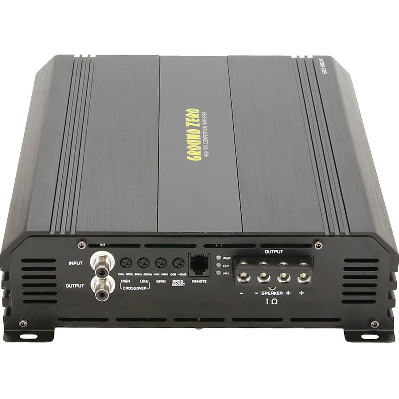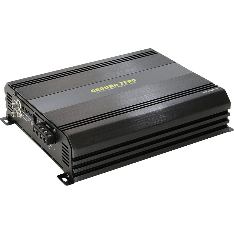 Förstärkaren är utrustad med variabelt aktivt crossoverfilter, bass boost och en stabiliserad högspännings-strömförsörjning för maximal prestanda även under tuffa förhållanden. Den har robusta anslutningsterminaler och en solid kylfläns med Ground Zero-logotyp för effektiv värmeavledning.