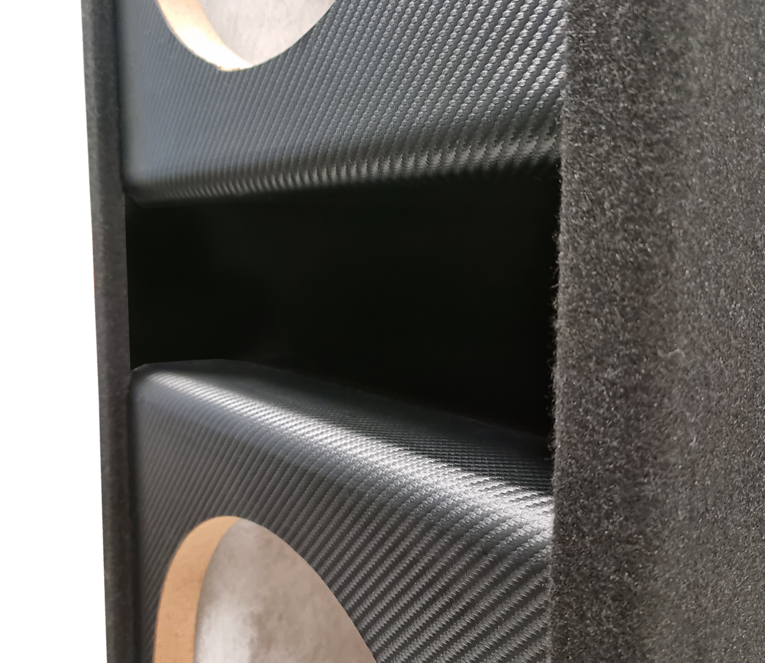 4-AI212SLOT är en MDF-baserad portad låda med hög volym och kraftig portdesign, framtagen för dubbla 12-tums subwoofers.