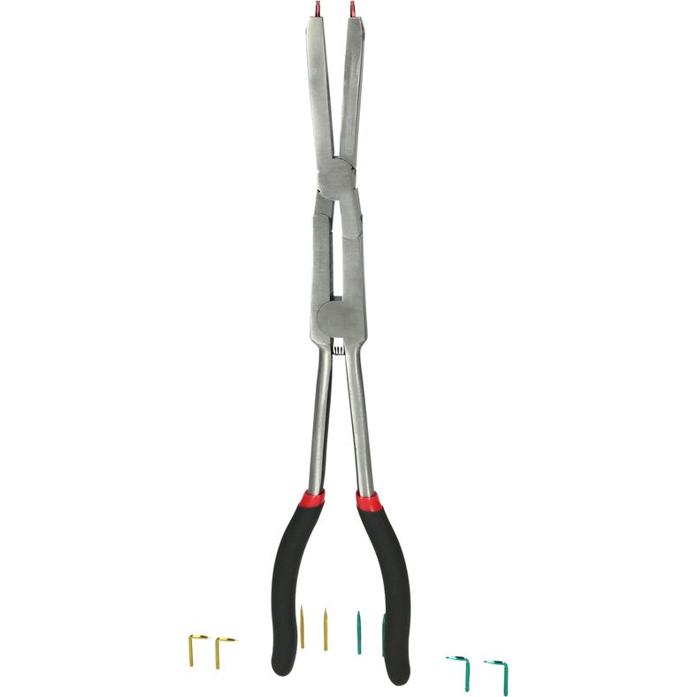 KS Tools 500.7015 är en kraftfull låsringstång för yttre säkerhetsringar i storleksområdet Ø 12–30 mm. Med fem utbytbara spetspar och ett ergonomiskt utformat grepp ger den både flexibilitet och komfort vid precisionsarbete. Verktyget är idealiskt för underhåll, reparationer och montage i både fordons- och industrisammanhang.
