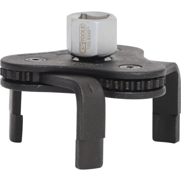 KS Tools KS150.9313 är en universell oljefilter-spännyckel som täcker ett brett diameterområde från 63 till 102 mm. Den är kompatibel med både 3/8" och 1/2" drivning och erbjuder hög flexibilitet vid arbete med olika fordonstyper och filterstorlekar.