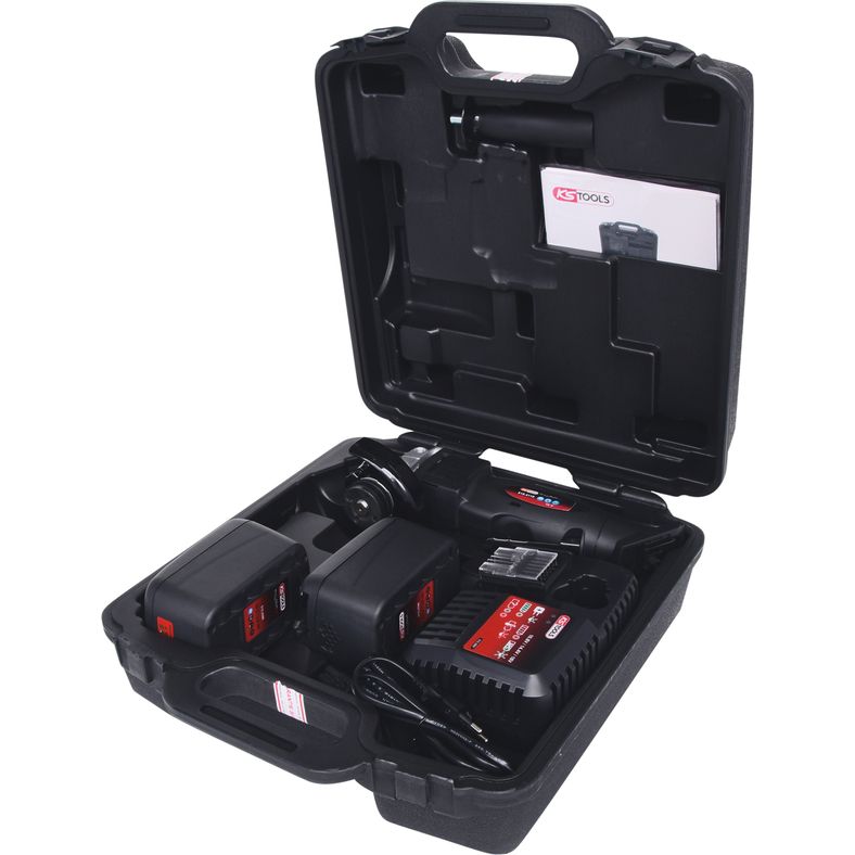 KS TOOLS Batteridriven-vinkelslipare 7000 varv/min med 2 uppladdningsbara