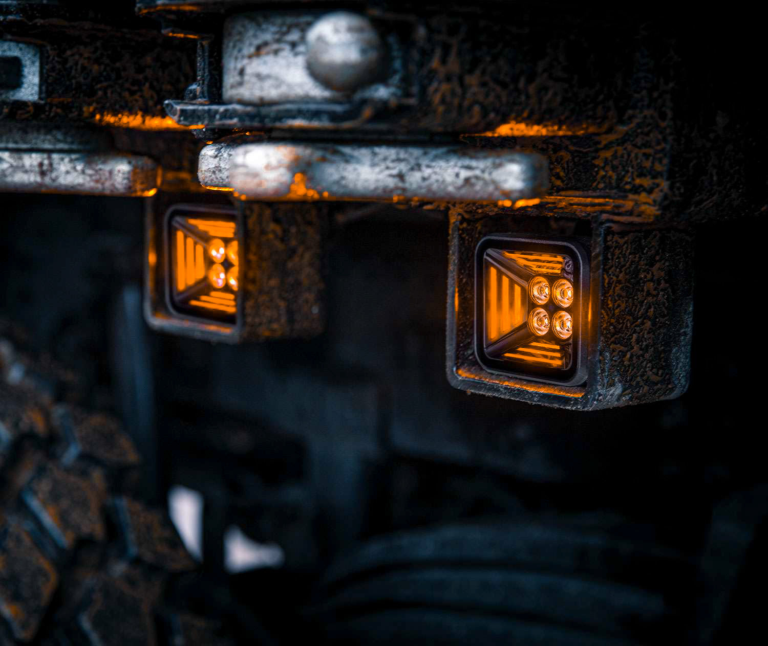 Lampan är försedd med amberfärgat positionsljus, vilket ökar synligheten och säkerheten i trafiken eller på arbetsplatsen. Den robusta konstruktionen med hus i svart aluminium och klar polykarbonatlins garanterar lång livslängd och hög slitstyrka.