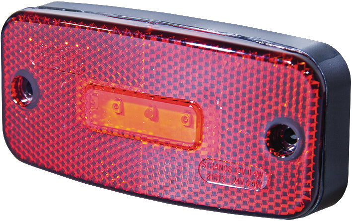 Den röda lysdiodsbelysningen säkerställer tydlig synlighet och är idealisk för sidomarkering på lastbilar, släp och andra fordon. Lampan har en kompakt design med måtten 111×22×51/76 mm och ett hålavstånd på 90 mm.
