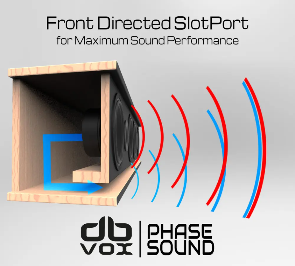 Slotportad konstruktion (phasesound) för kraftfull bas och hög effektivitet