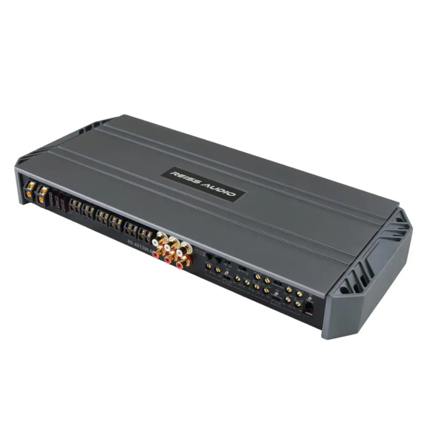 Reiss RS-AE1200.6D är ett avancerat 6-kanals Klass D-slutsteg utvecklat för dig som vill bygga ett komplett och kraftfullt ljudsystem med maximal kontroll över varje högtalare. Med upp till 200W RMS per kanal vid 2 ohm och en total maxeffekt på 2400W, erbjuder RS-AE1200.6D en kombination av råstyrka, effektivitet och flexibilitet som gör det idealiskt för allt från kraftfulla midbasar till noggrant finstämda diskanter.