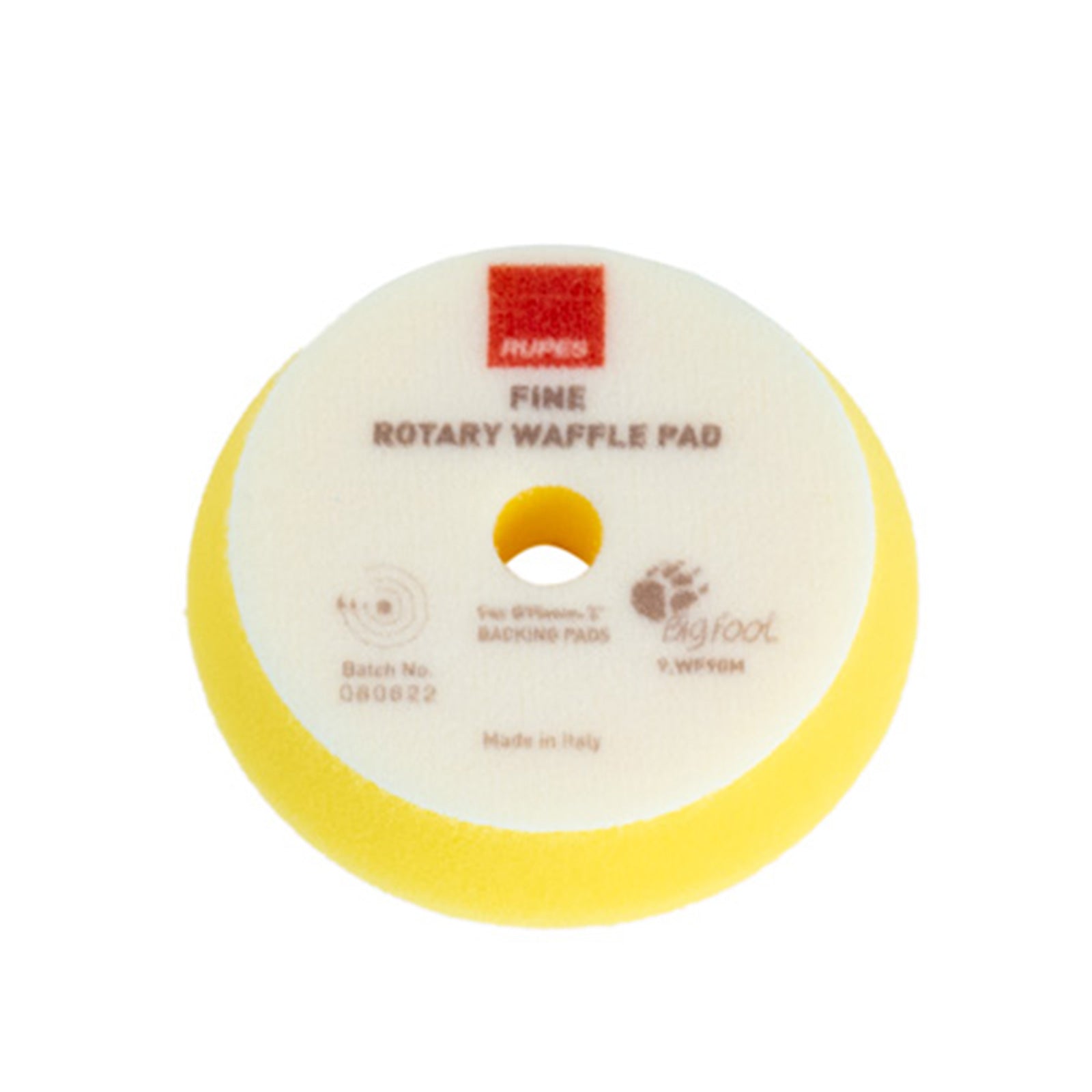 Rupes Rotary Waffle Fine 75 mm är en gul våfflad skumtrissa utvecklad för finpolering med roterande maskiner. Den är utformad för att leverera en jämn och glansig yta efter grovpolering, samtidigt som den håller nere värmeutvecklingen. Den våfflade ytan minimerar friktion, vilket ger en svalare poleringsprocess och ökad säkerhet mot brännmärken.