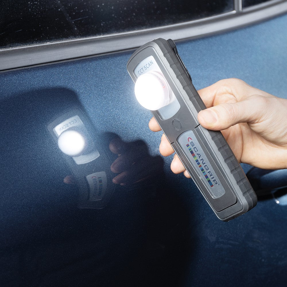 Scangrip Sunmatch 4 är en avancerad arbetslampa utvecklad för professionell användning inom lackering, bilvård och rekonditionering. Med den unika CCT Scan-funktionen erbjuder lampan en optimal lösning för att snabbt och effektivt kontrollera färgmatchning mellan original- och omlackerade ytor.