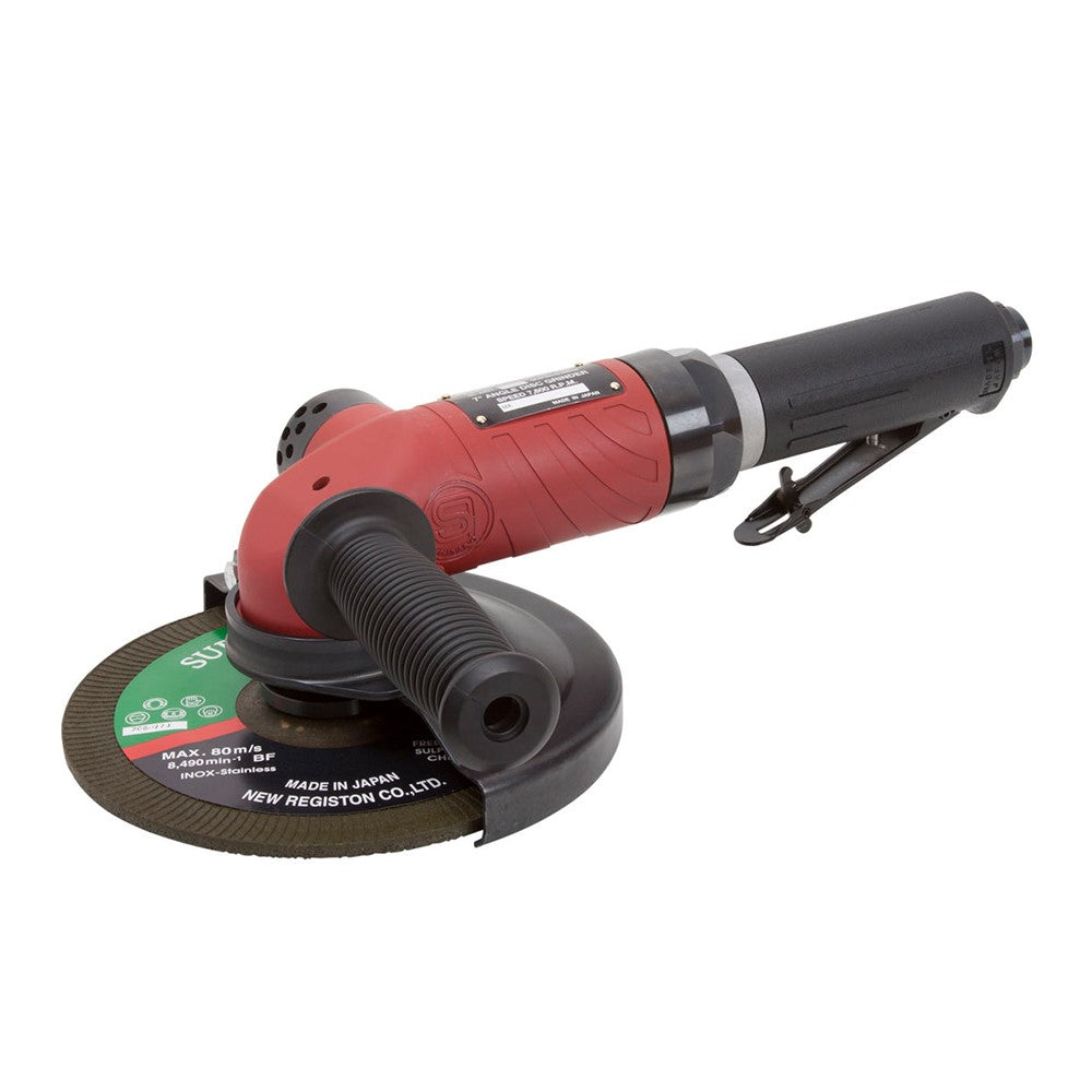 Shinano vinkelslipmaskin SIAG7-A4L är en kraftfull och ergonomiskt utformad luftdriven vinkelslip, särskilt framtagen för arbete med kapskivor, navrondeller och lamellrondeller. Den är utrustad med ett förlängt handtag för bättre balans, ett utåtvinklat sidohandtag för optimal ergonomi och en smidig design som ger bättre sikt mot arbetsytan.