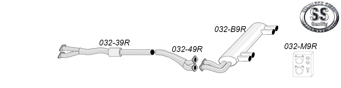 Bakdämparen med artikelnummer 032-B9R är kompatibel med originalflänsarna och kan vid behov monteras separat, vilket ger extra flexibilitet för anpassningar eller delbyten. Systemet är tillverkat i högkvalitativt rostfritt stål som står emot korrosion och ger lång livslängd även under tuffa förhållanden.