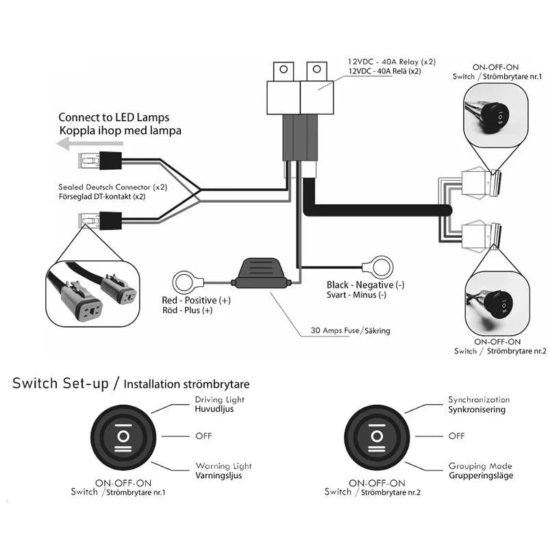 Kabelsatsen har 4-PIN kontakt och är särskilt utvecklad för att möjliggöra separat styrning av både blixtljus och arbetsljus – perfekt för fordon där flexibilitet och kontroll är avgörande.