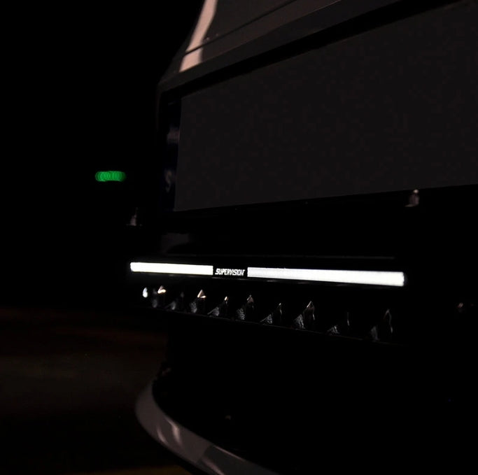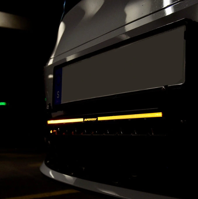 Rampens duo positionsljus låter dig själv välja om du vill köra med vitt eller orange sken. Det unika mönstret i positionsljuset lyser diskret upp Supervision-logotypen och ger ett exklusivt helhetsintryck, oavsett bilmodell.