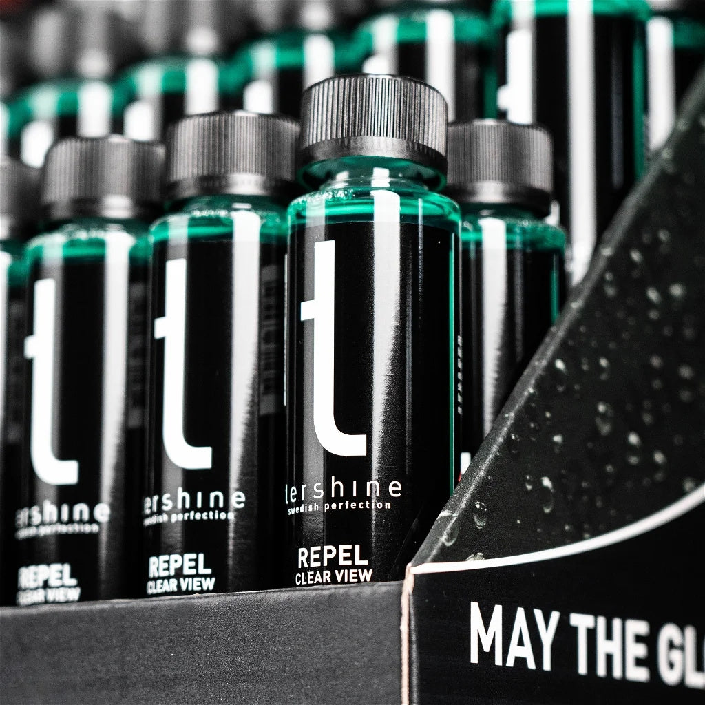 Tershine Repel Clear View är en innovativ tillsats för spolarvätskan som ger en renare ruta och förbättrad avrinning. Tack vare den hydrofobiska effekten gör den körningen i regn eller blöta förhållanden betydligt enklare och mer bekväm. Produkten gör att rutan håller sig renare under en längre tid och minskar behovet av spolarvätska, vilket gör det både ekonomiskt och miljövänligt.