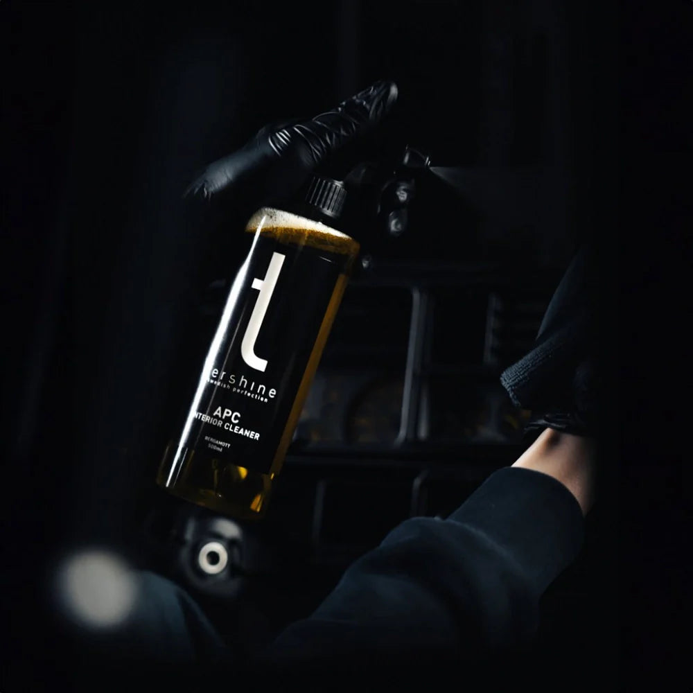 Tershine APC Grönt Äpple är en kraftfull och biologiskt nedbrytbar allrengöring, speciellt utvecklad för bilens insida. Den avlägsnar smuts snabbt och effektivt utan att lämna ränder eller hinnor. Den friska äppeldoften kombineras med en avancerad odörblockerande funktion som neutraliserar dålig lukt. Perfekt för plast, textil, skinn, Alcantara och gummi. Produkten är utspädningsbar och fri från högfluorerade ämnen (PFAS).