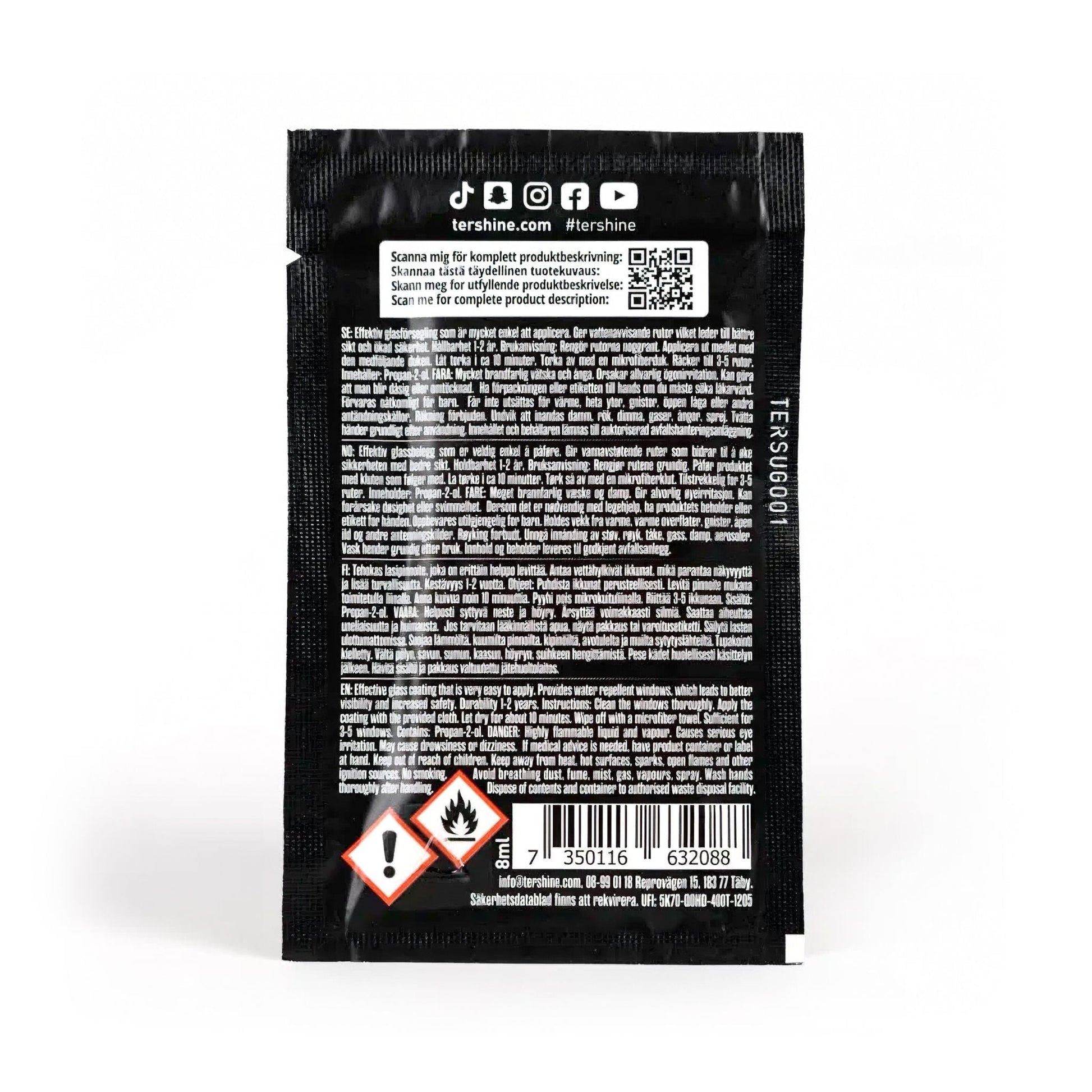 Tershine Magnify är en mycket effektiv glasförsegling som skapar en vattenavvisande yta för ökad sikt och säkerhet vid regn, snö och smuts. Produkten är utvecklad för att fungera på alla typer av glas- och plastytor och har en imponerande hållbarhet på upp till 2 år eller över 2000 körda mil. Förseglingen reducerar behovet av vindrutetorkare vid högre hastigheter och bidrar till bättre körkomfort i dåliga väderförhållanden.