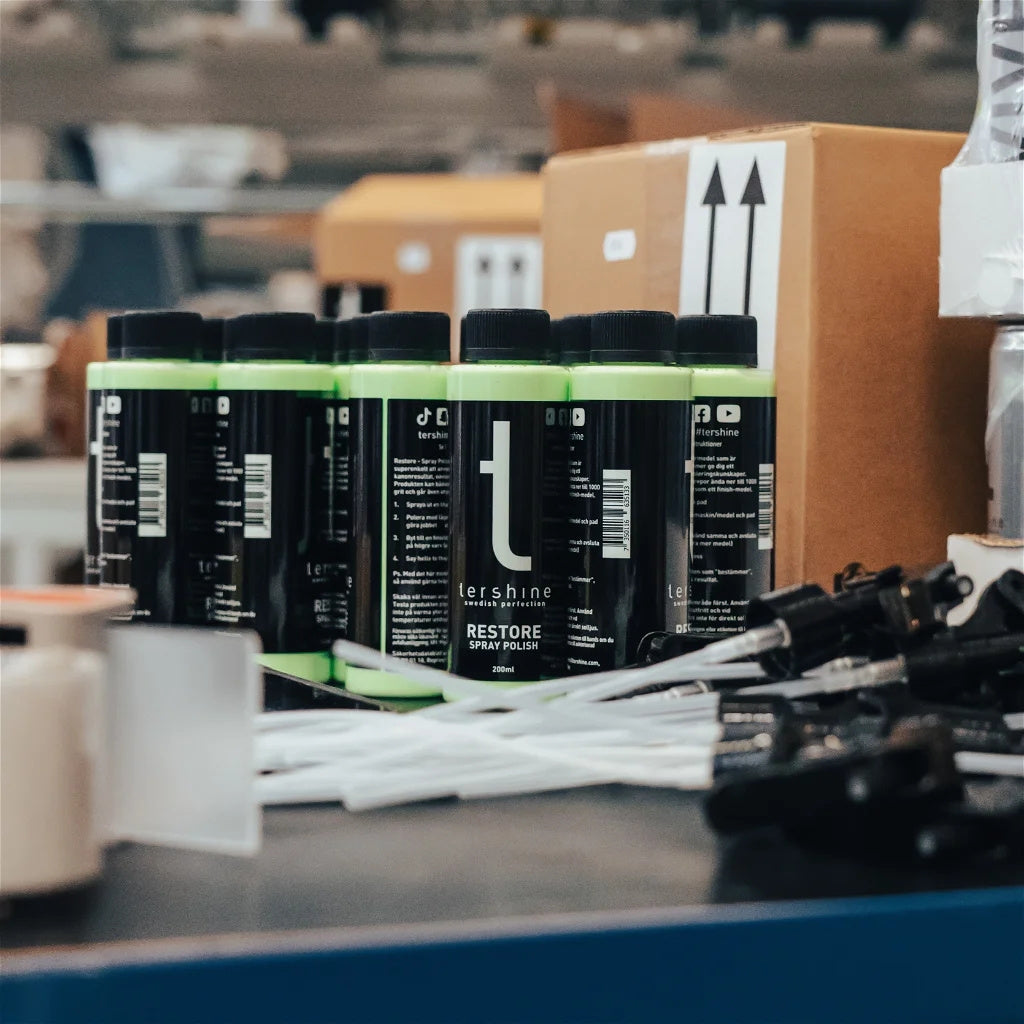 Tershine Restore Spray Polish är ett högpresterande polermedel i sprayform som kombinerar effektiv repborttagning med smidig applicering. Produkten är formulerad för att fungera lika bra för nybörjare som för erfarna detailers och klarar att korrigera repor ända ner till 1000 grit – vilket motsvarar en kraftig "heavy cut". Trots sin kraft är medlet även tillräckligt finkornigt för att fungera som en avslutande polish, beroende på val av polerpad.