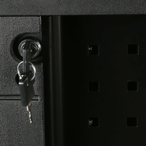 Samtliga lådor är individuellt låsbara för ökad säkerhet, och vagnen kan även centrallåsas från sidan. Hörn är skyddade med plastkantskydd för att motstå kollisioner, och två av de fyra hjulen är försedda med broms. Vagnen är fullt monterad vid leverans.
